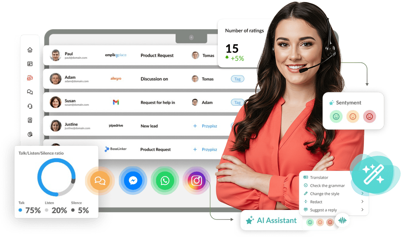 Collect and organise all customer information with full communication history from every channel in one place. Personalised communication, effective sales, and efficient service with Thulium AI assistants.