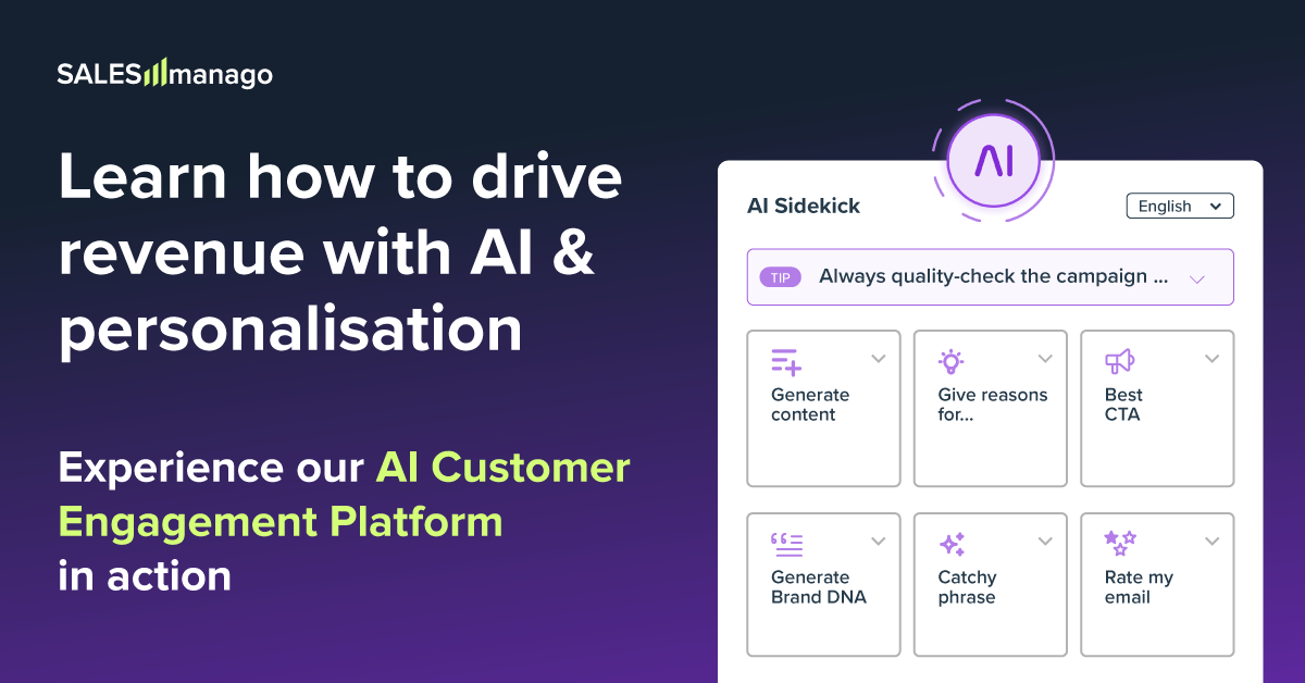 SALESmanago offers the leading, AI Customer Engagement Platform that enables marketers to fully personalise omnichannel customer journeys across the entire lifecycle. We support the growth of over 3,000 eCommerce brands by helping them engage, convert and retain their customers — turning every touchpoint into revenue.